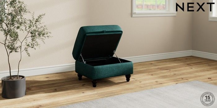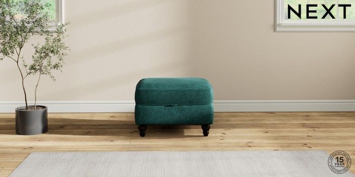 7.2.10 Ashford Relaxed Sit Storage Footstool Plush Chenille Dark Teal Green Low Turned - Dark | Made Click here to use our website with more accessibility support, for example screen readers