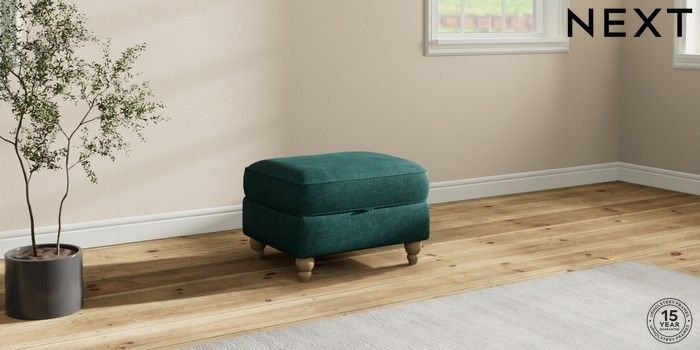 7.2.10 Ashford Relaxed Sit Storage Footstool Plush Chenille Dark Teal Green Low Turned - Light | Made Click here to use our website with more accessibility support, for example screen readers