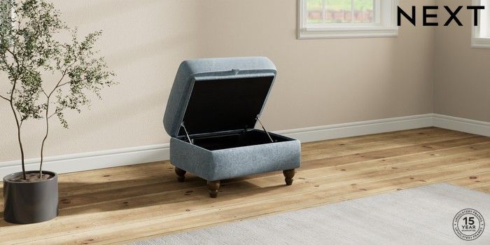 7.2.10 Ashford Relaxed Sit Storage Footstool Plush Chenille Light Blue Low Turned - Mid | Made Click here to use our website with more accessibility support, for example screen readers