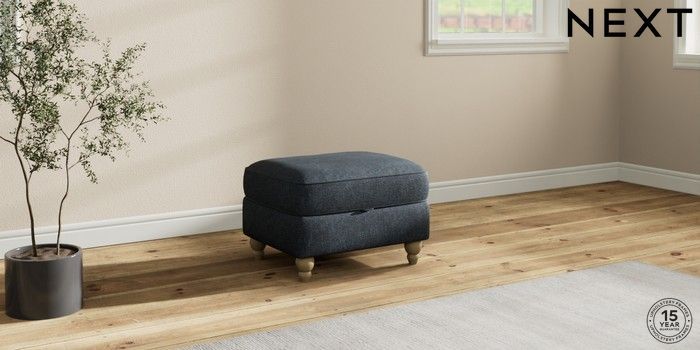 7.2.10 Ashford Relaxed Sit Storage Footstool Plush Chenille Slate Blue Low Turned - Light | Made Click here to use our website with more accessibility support, for example screen readers
