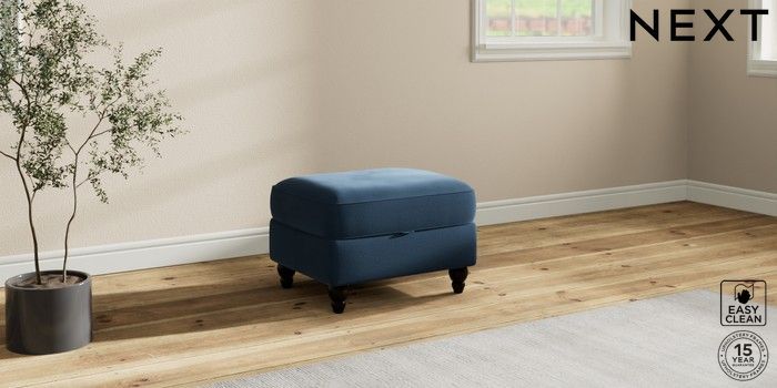7.2.10 Ashford Relaxed Sit Storage Footstool Plush Velvet Easy Clean Airforce Blue Low Turned - Dark | Made Click here to use our website with more accessibility support, for example screen readers