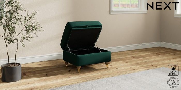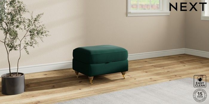 7.2.10 Ashford Relaxed Sit Storage Footstool Plush Velvet Easy Clean Bottle Green Castor - Light | Made Click here to use our website with more accessibility support, for example screen readers