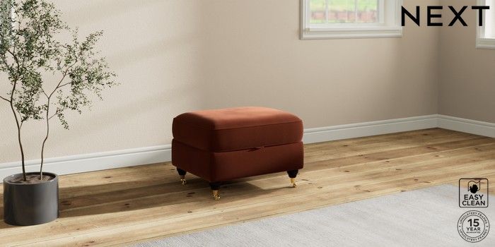7.2.10 Ashford Relaxed Sit Storage Footstool Plush Velvet Easy Clean Ginger Orange Castor - Dark | Made Click here to use our website with more accessibility support, for example screen readers