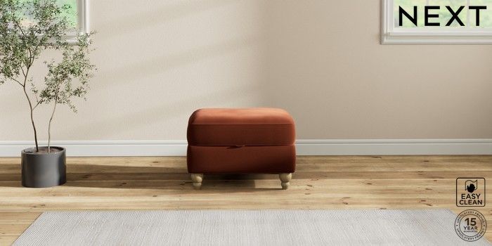 7.2.10 Ashford Relaxed Sit Storage Footstool Plush Velvet Easy Clean Ginger Orange Low Turned - Light | Made Click here to use our website with more accessibility support, for example screen readers