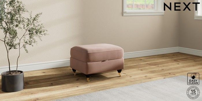 7.2.10 Ashford Relaxed Sit Storage Footstool Plush Velvet Easy Clean Mid Natural Castor - Dark | Made Click here to use our website with more accessibility support, for example screen readers