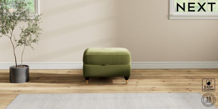 7.2.10 Ashford Relaxed Sit Storage Footstool Plush Velvet Easy Clean Mid Olive Green Castor - Dark | Made Click here to use our website with more accessibility support, for example screen readers