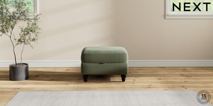 7.2.10 Ashford Relaxed Sit Storage Footstool Relaxed Linen Look Dark Green Low Turned - Dark | Made Click here to use our website with more accessibility support, for example screen readers