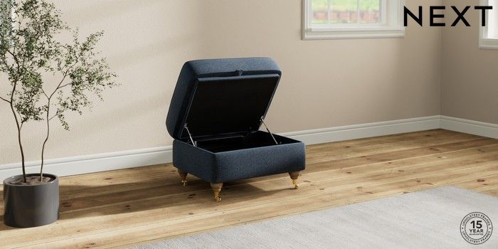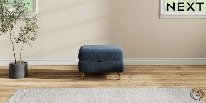 7.2.10 Ashford Relaxed Sit Storage Footstool Ripple Chenille Dark Blue Castor - Light | Made Click here to use our website with more accessibility support, for example screen readers