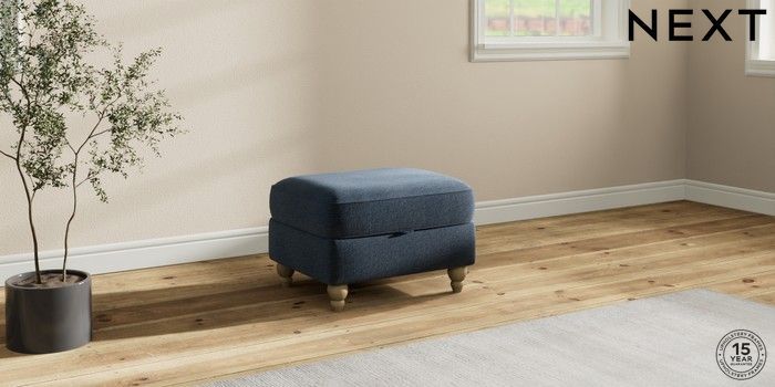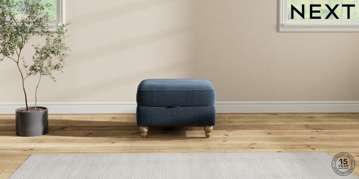 7.2.10 Ashford Relaxed Sit Storage Footstool Ripple Chenille Dark Blue Low Turned - Light | Made Click here to use our website with more accessibility support, for example screen readers
