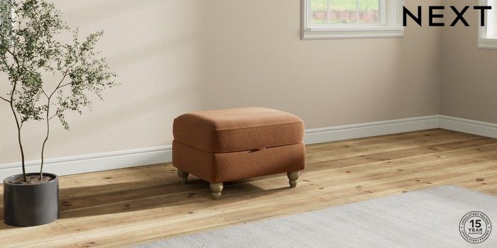 7.2.10 Ashford Relaxed Sit Storage Footstool Ripple Chenille Mid Rust Brown Low Turned - Light | Made Click here to use our website with more accessibility support, for example screen readers
