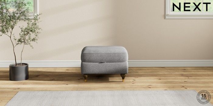 7.2.10 Ashford Relaxed Sit Storage Footstool Studio Chenille Mid Grey Modern Turned Metal Cap - Mid | Made Click here to use our website with more accessibility support, for example screen readers