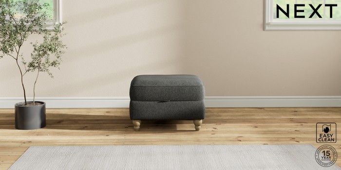7.2.10 Ashford Relaxed Sit Storage Footstool Tweedy Blend Easy Clean Charcoal Grey Low Turned - Light | Made Click here to use our website with more accessibility support, for example screen readers