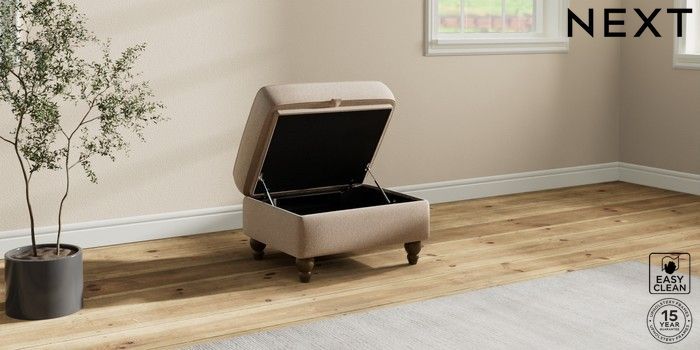 7.2.10 Ashford Relaxed Sit Storage Footstool Tweedy Blend Easy Clean Light Dove Natural Low Turned - Mid | Made Click here to use our website with more accessibility support, for example screen readers