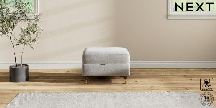 7.2.10 Ashford Relaxed Sit Storage Footstool Tweedy Blend Easy Clean Light Silver Grey Castor - Mid | Made Click here to use our website with more accessibility support, for example screen readers