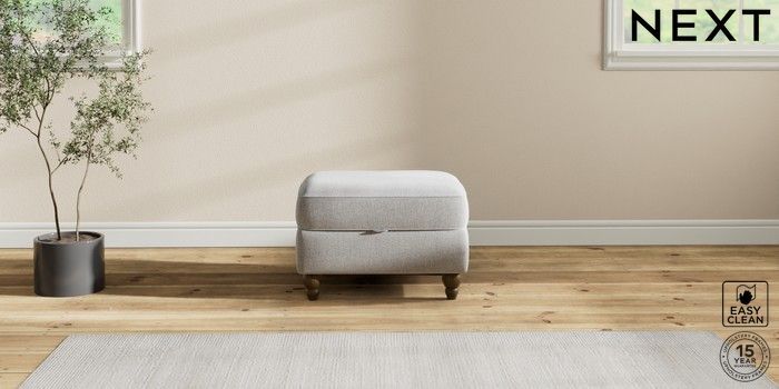 7.2.10 Ashford Relaxed Sit Storage Footstool Tweedy Blend Easy Clean Light Silver Grey Low Turned - Mid | Made Click here to use our website with more accessibility support, for example screen readers