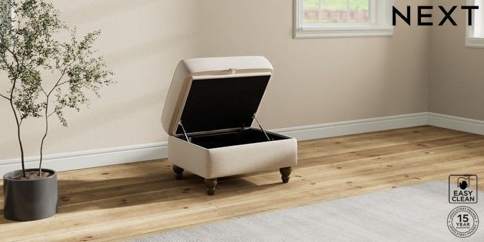 7.2.10 Ashford Relaxed Sit Storage Footstool Tweedy Blend Easy Clean Oyster Low Turned - Mid | Made Click here to use our website with more accessibility support, for example screen readers