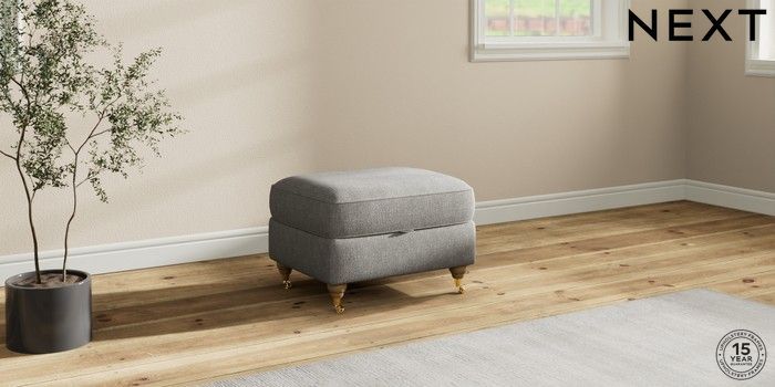 7.2.10 Ashford Relaxed Sit Storage Footstool Tweedy Chenille Mid Grey Castor - Light | Made Click here to use our website with more accessibility support, for example screen readers