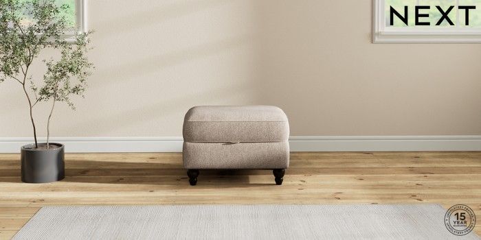 7.2.10 Ashford Relaxed Sit Storage Footstool Tweedy Chenille Mid Natural Low Turned - Dark | Made Click here to use our website with more accessibility support, for example screen readers