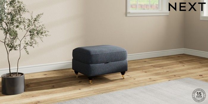 7.2.10 Ashford Relaxed Sit Storage Footstool Tweedy Chenille Navy Blue Castor - Dark | Made Click here to use our website with more accessibility support, for example screen readers