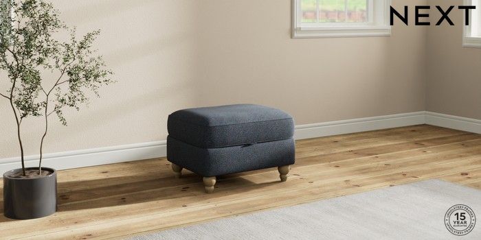 7.2.10 Ashford Relaxed Sit Storage Footstool Tweedy Chenille Navy Blue Low Turned - Light | Made Click here to use our website with more accessibility support, for example screen readers