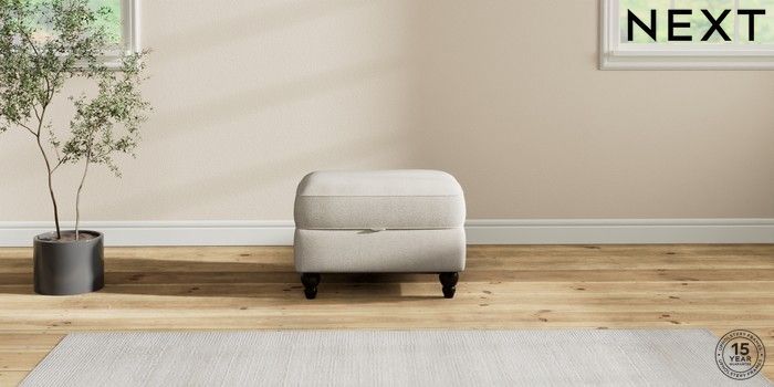 7.2.10 Ashford Relaxed Sit Storage Footstool Tweedy Chenille Oyster Low Turned - Dark | Made Click here to use our website with more accessibility support, for example screen readers