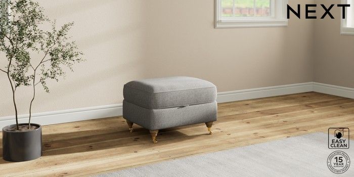 7.2.10 Ashford Relaxed Sit Storage Footstool Woven Chenille Easy Clean Light Grey Castor - Light | Made Click here to use our website with more accessibility support, for example screen readers