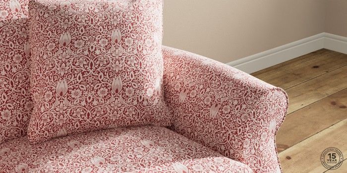 7.2.10 Ashford 2 Seater Small Sofa Borage by Morris and Co Berry Red Modern Turned Metal Cap - Mid | Made Click here to use our website with more accessibility support, for example screen readers
