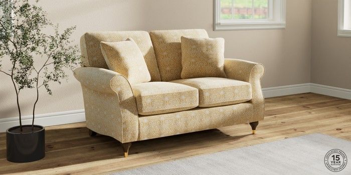7.2.10 Ashford 2 Seater Small Sofa Borage by Morris and Co Sunflower Yellow Modern Turned Metal Cap - Mid | Made Click here to use our website with more accessibility support, for example screen readers