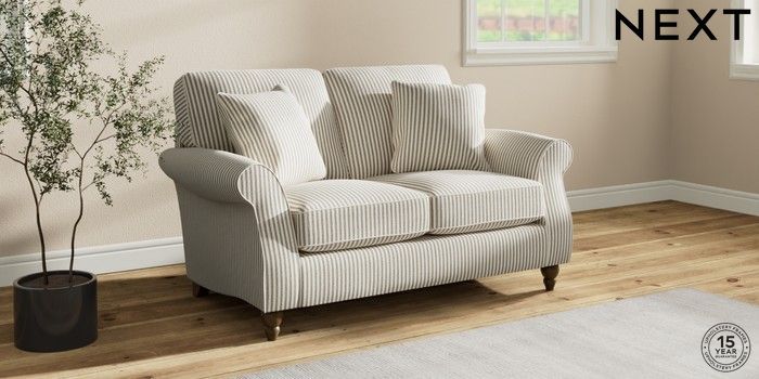7.2.10 Ashford 2 Seater Small Sofa Chenille Stripe Moss Green Low Turned - Mid | Made Click here to use our website with more accessibility support, for example screen readers