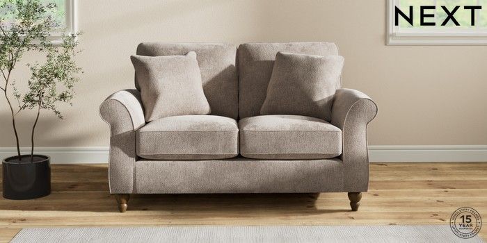 7.2.10 Ashford 2 Seater Small Sofa Chunky Chenille Light Dove Low Turned - Mid | Made Click here to use our website with more accessibility support, for example screen readers