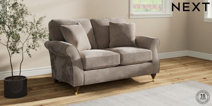 7.2.10 Ashford 2 Seater Small Sofa Chunky Chenille Light Dove Modern Turned Metal Cap - Mid | Made Click here to use our website with more accessibility support, for example screen readers