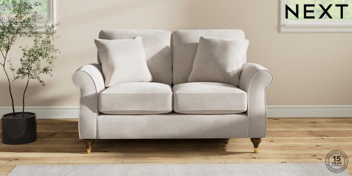 7.2.10 Ashford 2 Seater Small Sofa Chunky Chenille Oyster Modern Turned Metal Cap - Mid | Made Click here to use our website with more accessibility support, for example screen readers