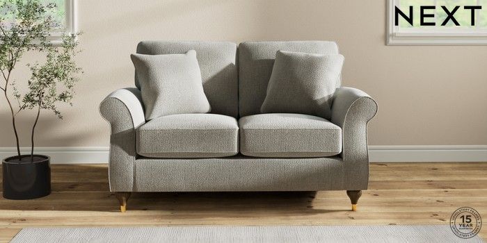 7.2.10 Ashford 2 Seater Small Sofa Chunky Texture Dove Modern Turned Metal Cap - Mid | Made Click here to use our website with more accessibility support, for example screen readers