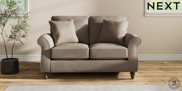 7.2.10 Ashford 2 Seater Small Sofa Chunky Weave Dark Natural Low Turned - Mid | Made Click here to use our website with more accessibility support, for example screen readers