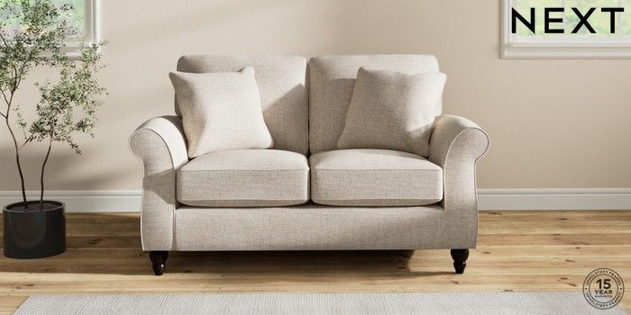 7.2.10 Ashford 2 Seater Small Sofa Chunky Weave Mid Natural Low Turned - Dark | Made Click here to use our website with more accessibility support, for example screen readers
