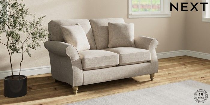 7.2.10 Ashford 2 Seater Small Sofa Chunky Weave Mid Natural Low Turned - Light | Made Click here to use our website with more accessibility support, for example screen readers