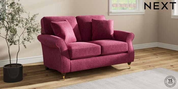 7.2.10 Ashford 2 Seater Small Sofa Cotswold Chenille Dark Raspberry Pink Castor - Mid | Made Click here to use our website with more accessibility support, for example screen readers