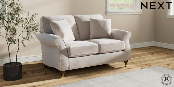 7.2.10 Ashford 2 Seater Small Sofa Cotswold Chenille Oyster Modern Turned Metal Cap - Mid | Made Click here to use our website with more accessibility support, for example screen readers