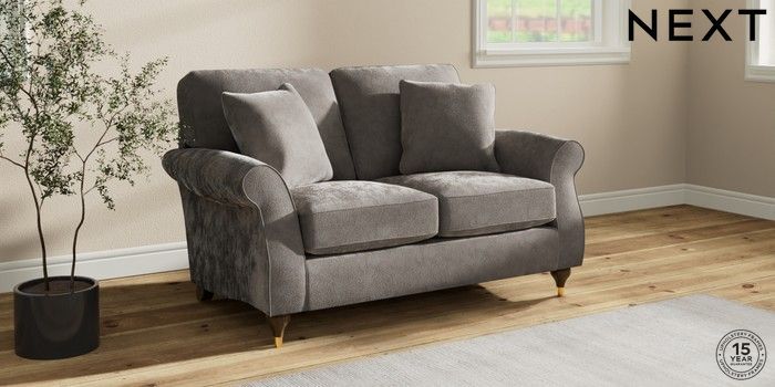 7.2.10 Ashford 2 Seater Small Sofa Distressed Velour French Grey Modern Turned Metal Cap - Mid | Made Click here to use our website with more accessibility support, for example screen readers