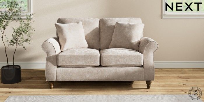 7.2.10 Ashford 2 Seater Small Sofa Distressed Velour Mid Natural Low Turned - Mid | Made Click here to use our website with more accessibility support, for example screen readers