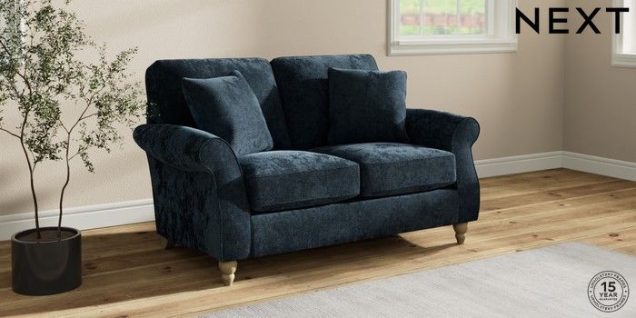 7.2.10 Ashford 2 Seater Small Sofa Distressed Velour Midnight Blue Low Turned - Light | Made Click here to use our website with more accessibility support, for example screen readers