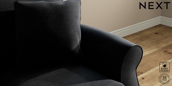 7.2.10 Ashford 2 Seater Small Sofa Fine Chenille Easy Clean Black Low Turned - Light | Made Click here to use our website with more accessibility support, for example screen readers