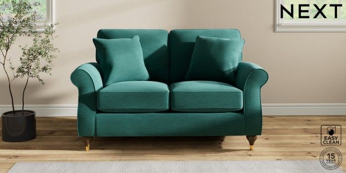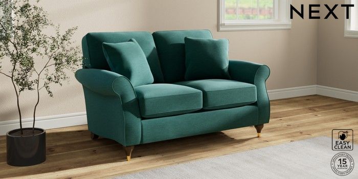 7.2.10 Ashford 2 Seater Small Sofa Fine Chenille Easy Clean Dark Juniper Green Modern Turned Metal Cap - Mid | Made Click here to use our website with more accessibility support, for example screen readers