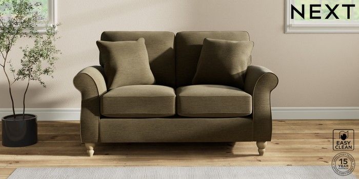 7.2.10 Ashford 2 Seater Small Sofa Fine Chenille Easy Clean Dark Moss Green Low Turned - Light | Made Click here to use our website with more accessibility support, for example screen readers