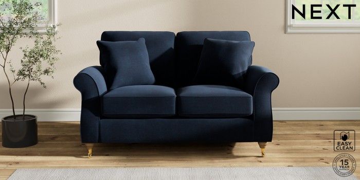 7.2.10 Ashford 2 Seater Small Sofa Fine Chenille Easy Clean Dark Navy Blue Castor - Light | Made Click here to use our website with more accessibility support, for example screen readers