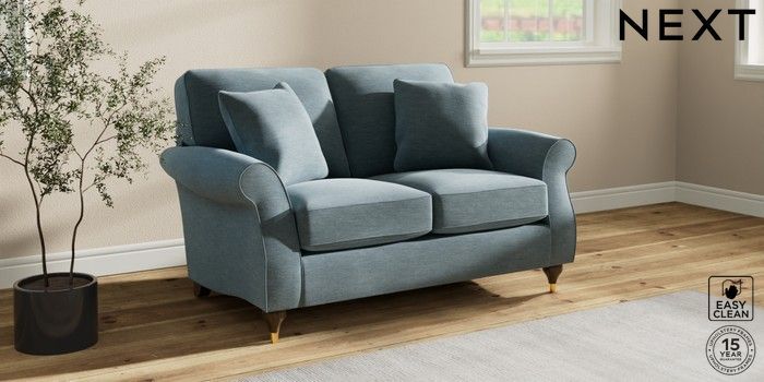 7.2.10 Ashford 2 Seater Small Sofa Fine Chenille Easy Clean Mid Blue Modern Turned Metal Cap - Mid | Made Click here to use our website with more accessibility support, for example screen readers