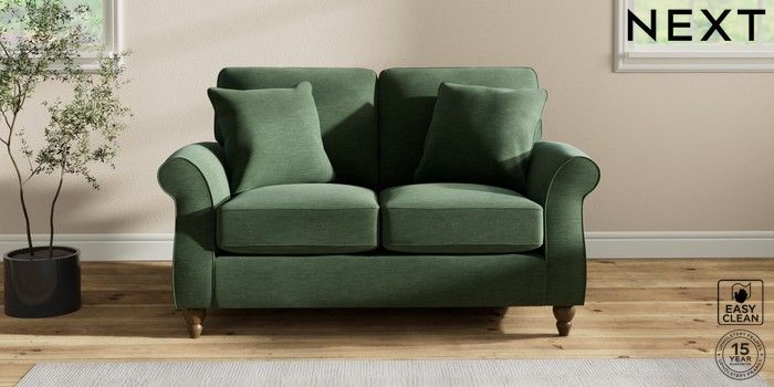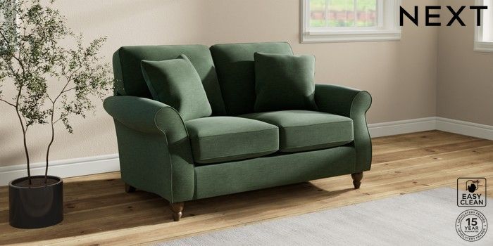 7.2.10 Ashford 2 Seater Small Sofa Fine Chenille Easy Clean Mid Khaki Green Low Turned - Mid | Made Click here to use our website with more accessibility support, for example screen readers