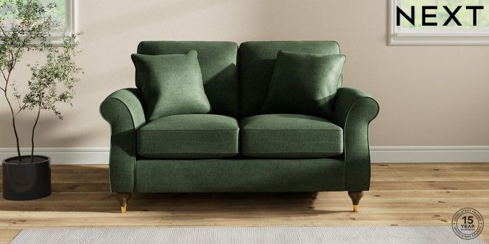 7.2.10 Ashford 2 Seater Small Sofa Luxe Chenille Dark Green Modern Turned Metal Cap - Mid | Made Click here to use our website with more accessibility support, for example screen readers