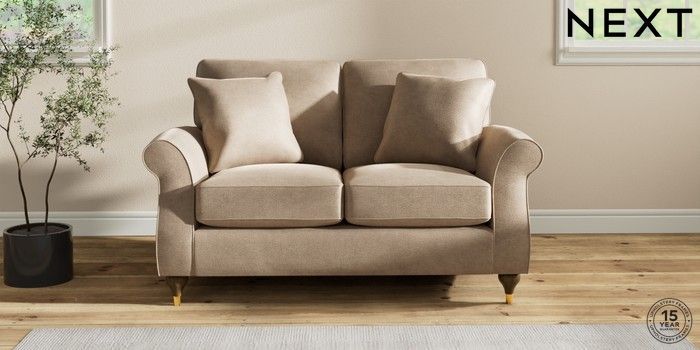 7.2.10 Ashford 2 Seater Small Sofa Luxe Chenille Mid Camel Beige Modern Turned Metal Cap - Mid | Made Click here to use our website with more accessibility support, for example screen readers