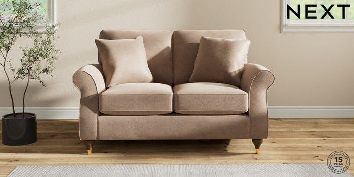7.2.10 Ashford 2 Seater Small Sofa Luxe Chenille Mid Natural Modern Turned Metal Cap - Mid | Made Click here to use our website with more accessibility support, for example screen readers